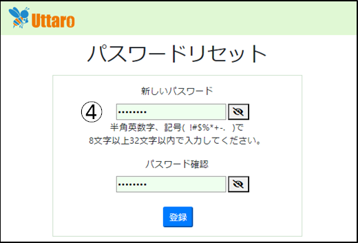 ④新しいパスワードを2回入力し、「登録」ボタンを押すことで再設定が完了します。